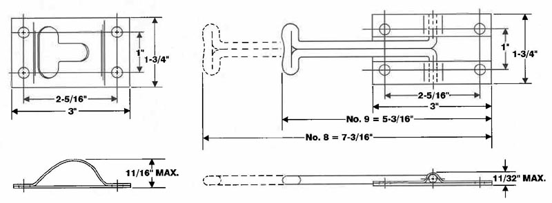 Steel door holder with rigid Steel wire hook. Holes for No. 10 screw.