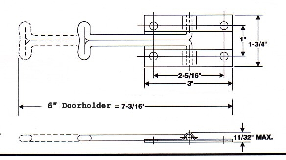 Steel door holder with rigid Steel wire hook. Holes for No. 10 screw.
