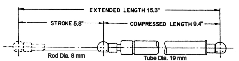 H-9511-150Gas Springs with Metal Ends